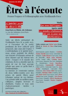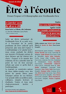 Suite au décès prématuré de Ferdinando Fava, le 14 août 2025, et à l’occasion de la sortie posthume du livre collectif qu’il préparait, Que nous fait l’espace ? L’anthropologue et le spatial turn*, nous avons souhaité lui dédier une journée d’échanges autour de deux thèmes qui lui étaient très chers : l’espace et le monde des relations. Ils les a abordés tant du point de vue de leur ancrage urbain que pour ce qu’ils font à l’anthropologie. La journée se construira autour de deux tables-rondes avec des prises de parole libres pour échanger autour de ces thèmes. Une grande table accueillera amis, collègues, simples lecteurs et étudiants. Toutes et tous sont chaleureusement invités à participer.