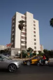 Les cinq « grands immeubles » semblent, coté sud, encore incarner le rêve du modernisme tropical : les façades sont blanches, malgré la peinture écaillée, la géométrie est univoque, les nappes d’asphalte sont encore en place malgré les craquelures ponctuelles. En venant de l’avenue Cheikh Sidati Aïdara, dont le terre-plein central est animé par de nombreuses activités et où les équipements projetés ont été modifiés par la coutume locale, on a l’impression qu’une autre ville commence après le rond-point.
